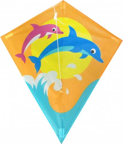 Quatre designs expressifs au choix – dauphins, soleil, fusée et ballon. Les motifs sont bien visibles dans le ciel et encouragent les enfants à bouger.