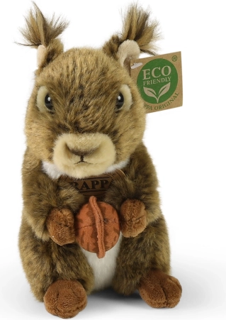 Adorable écureuil en peluche de 17 cm, parfait compagnon câlin pour les enfants dès la naissance. Son rendu est réaliste avec une grande queue duveteuse et il tient sa noisette. Fabriqué en peluche de haute qualité et rembourré avec du matériau issu de bouteilles PET recyclées, il est à la fois écoresponsable, sécurisé pour les tout-petits et agréablement doux au toucher.