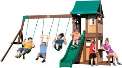 Le parc de jeux extérieur compact BACKYARD DISCOVERY Lakewood offre un divertissement sans fin aux enfants, même dans les petits jardins. Il propose deux balançoires, un trapèze pour les petits acrobates, une plateforme de jeu surélevée avec pare-soleil coloré, de vraies portes et une fenêtre avec banc et surtout un toboggan rapide de 244 cm. La structure en cèdre résistante et les détails bien pensés garantissent un jeu sûr pour les enfants dès 3 ans.