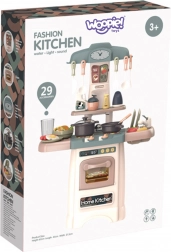 La cuisine pour enfants WOOPIE, au style moderne, ravira chaque petit chef. Elle propose des effets lumineux et sonores sur la plaque, un robinet fonctionnel avec circulation d’eau réelle, un four ouvrant et de nombreux éléments mobiles. Elle inclut un riche ensemble de 29 accessoires de cuisine qui stimulent la créativité, le jeu de rôle et développent la motricité fine.