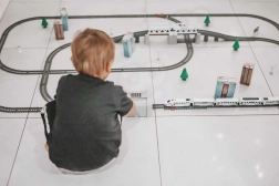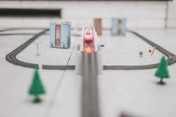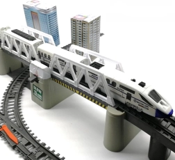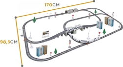 Ce circuit de train électrique moderne WOOPIE offre aux enfants de longues heures de divertissement et d’apprentissage. La rame de cinq voitures de type Pendolino file sur une voie de 9,14 m, éclaire le trajet d’une lumière rouge et, grâce à la régulation de vitesse, s’adapte facilement au rythme du jeu. L’attraction phare est le pont levant commandé par bouton et le tunnel décoratif, qui apportent tension et réalisme au parcours.