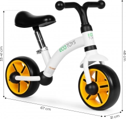 La draisienne ECOTOYS est un excellent choix pour les premières étapes vers une conduite autonome. Grâce à son faible poids et à sa conception astucieuse, les enfants s’exercent naturellement à l’équilibre, la coordination et la confiance, ce qui facilite la transition vers un vélo classique. Son cadre en acier peint par poudrage assure durabilité et look moderne, tandis que les roues EVA sont silencieuses, résistantes et ne nécessitent aucun gonflage.