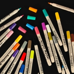 Cet ensemble de feutres acryliques transformera les objets du quotidien en œuvres d'art. Avec 24 couleurs différentes, y compris deux métalliques, vous pouvez pleinement développer votre créativité et oublier les limitations des feutres ordinaires.