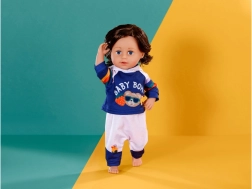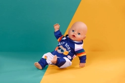 - Combinaison bleu‑blanc, rayures arc‑en‑ciel sur les manches, motif BABY BORN