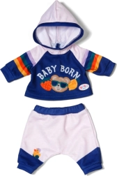 Un survêtement stylé pour poupées de 43 cm qui donne une nouvelle dimension au jeu. Le set comprend un sweat à capuche et un pantalon dans une combinaison bleu‑blanc avec des rayures arc‑en‑ciel ludiques et l’imprimé BABY BORN. La tenue est facile à enfiler et à retirer, idéale pour le jeu de rôle, le développement de la motricité fine et la stimulation de l’imagination des enfants dès 3 ans.
