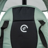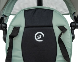 - Siège : large assise, dossier amovible, ceintures à trois points et barre de protection en mousse