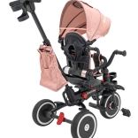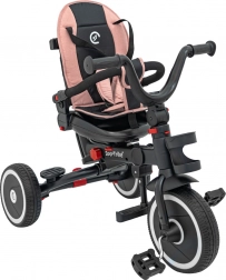 Le tricycle possède une grande selle confortable et est équipé de ceintures à trois points avec des éléments de protection souples.
