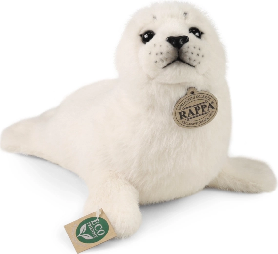 Adorable phoque en peluche de 30 cm de la collection RAPPA, qui ravira enfants et collectionneurs. Confectionné en peluche de haute qualité, toute douce, il présente des détails réalistes, une fabrication artisanale et un rembourrage éco‑responsable en bouteilles PET recyclées – sûr et agréable au toucher.