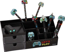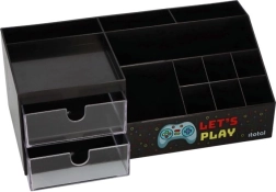 La finition noire moderne avec l’inscription LET’S PLAY et un visuel de manette ajoute une touche ludique à votre setup. Grâce à ses dimensions compactes, il trouve sa place sur tout bureau et contribue à créer un espace de travail propre, productif et stylé.