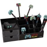 La partie supérieure compartimentée accueille stylos, marqueurs, ciseaux et petits accessoires. Chaque chose a sa place et votre bureau reste net.