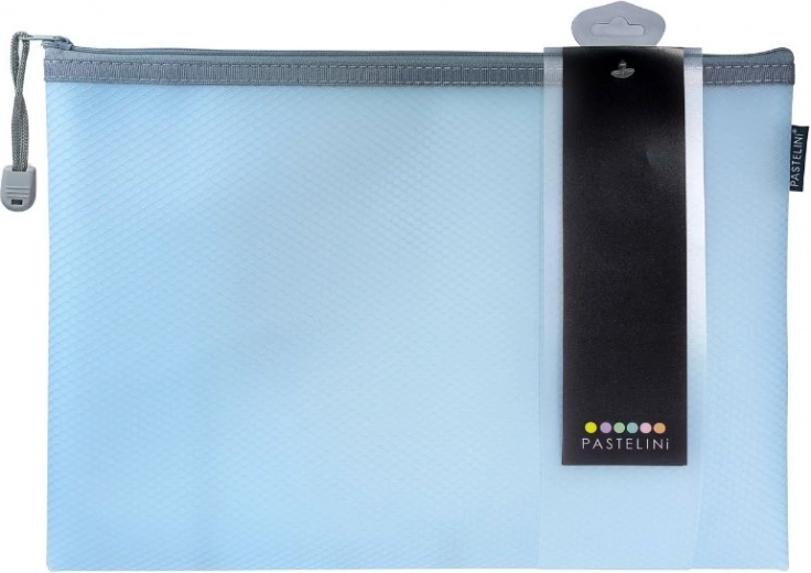 Pratique pochette en bleu pastel format A4 avec fermeture éclair, idéale pour conserver et transporter en toute sécurité des documents et de petits objets.