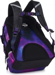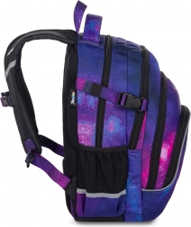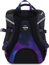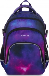 Sac à dos scolaire OXYBAG Scooler Galaxy léger et spacieux avec trois compartiments, un organiseur et une poche pour ordinateur portable, offrant un rangement parfait et un grand confort pour les élèves à partir de la 3e année. Il possède un dos anatomique respirant, des bretelles réglables avec sangle de poitrine, des éléments réfléchissants pour la sécurité et un fond renforcé imperméable. Volume 28 l, poids 780 g, capacité de charge 8 kg.
