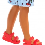 Les sandales rouges sont faciles à enfiler et tiennent bien aux pieds, pour que la poupée soit prête pour chaque aventure.