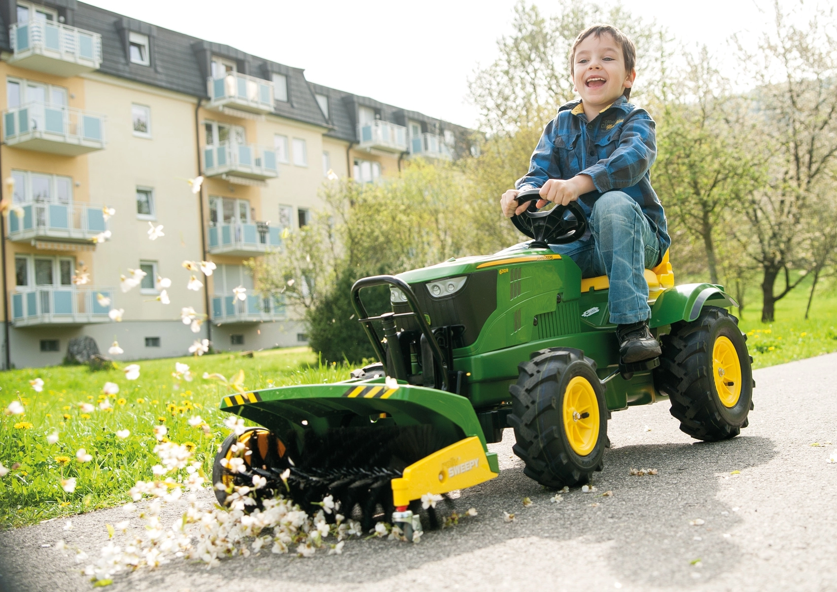 La brosse balayeuse Rolly Toys transforme chaque trajet en tracteur en mission de nettoyage active. La grande brosse rotative collecte efficacement feuilles et débris, tandis que la conception robuste assure une longue durée de vie même en usage extérieur fréquent.