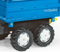 La remorque RollyMega est équipée de deux essieux, garantissant une manœuvrabilité aisée et une intégration fluide dans le temps de jeu. Elle dispose de panneaux latéraux verrouillables qui sécurisent la charge pendant le transport. Les panneaux peuvent également être ouverts pour renforcer le réalisme lors du chargement et du déchargement.