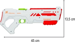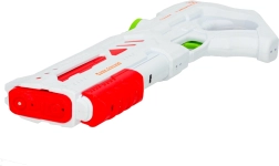 Ce pistolet à eau moderne de couleur blanche avec des accents verts et rouges apporte un divertissement apprécié dans un style nouveau. Grâce à la gâchette automatique et à la recharge USB, les enfants l’utilisent de manière intuitive et sans effort. Sa conception ergonomique et son faible poids assurent une prise en main confortable, même lors de jeux prolongés.