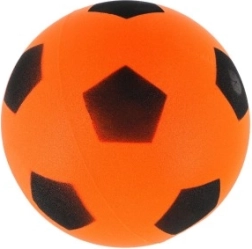 Motif football classique en orange et jaune, qui motive au jeu et améliore la visibilité du ballon en mouvement.