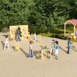 Le bois de pin imprégné de qualité assure une grande durabilité et une résistance aux intempéries. Conçue pour l’extérieur, la table se nettoie facilement et, grâce à son agencement réfléchi, encourage l’autonomie des enfants ainsi que la coopération en groupe.