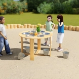 Découvrez le monde du jeu sensoriel avec cette table ronde multifonction qui combine bois naturel et bacs en métal. Les enfants peuvent expérimenter en toute sécurité avec différents matériaux – verser, transvaser, filtrer et comparer. Grâce à ses 6 stations indépendantes, la table est parfaite pour le jeu collaboratif et l’apprentissage par le jeu.