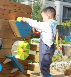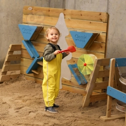Découvrez un panneau extérieur robuste pour jeux d’eau et de sable de la marque CLASSIC WORLD, associant éléments interactifs et banc confortable. Grâce au bois de pin imprégné de haute qualité, aux finitions non toxiques et aux entonnoirs ludiques avec moulin et rampe, il offre à la fois jeu sensoriel et apprentissage. Idéal comme complément d’un bac à sable ou d’une aire de jeu de jardin pour les enfants dès 3 ans.