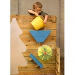 - Jeu sensoriel polyvalent : eau et sable, entonnoirs, goulottes et moulin.