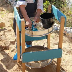 Découvrez le robuste double tamis en bois pour sable de CLASSIC WORLD pour un jeu sensoriel en extérieur comme en intérieur. Grâce aux grands tamis métalliques suspendus par des chaînes, les enfants peuvent trier, tamiser et explorer des matériaux tels que le sable, les petits cailloux ou l’eau, développer leur motricité fine et comprendre les relations de cause à effet. La structure en bois stable avec des panneaux résistants garantit une longue durée de vie et une utilisation sûre dans les écoles maternelles, sur les aires de jeux comme à la maison.
