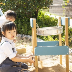 Transvaser, verser et trier entraînent la préhension et la coordination. Les enfants développent leur imagination en jouant avec le sable, les cailloux ou l’eau.