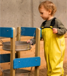 Le double tamis CLASSIC WORLD EDU est une station pensée pour le jeu sensoriel, qui encourage l’apprentissage par l’expérimentation. Deux grands tamis métalliques sont suspendus à des chaînes, permettant aux enfants d’observer le processus de tamisage, de comparer les matériaux et d’essayer différentes vitesses de versement ou d’écoulement de l’eau. Grâce à sa structure en bois solide, l’ensemble convient à un usage quotidien dans les écoles maternelles et sur les aires de jeux publiques.