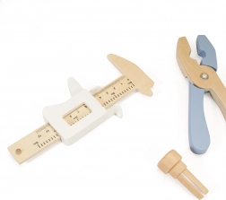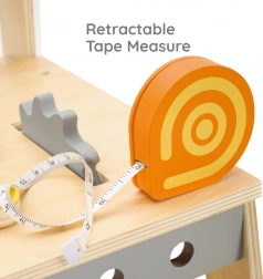 Inclus : marteau, tournevis, clé plate, scie, pince et jauges fonctionnelles – idéal pour entraîner la motricité fine et la coordination.