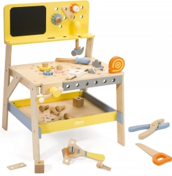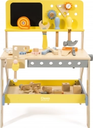Découvrez le monde créatif des réparations et de la construction avec l’atelier en bois CLASSIC WORLD. Cet ensemble de qualité comprend 27 éléments, dont des outils et des accessoires, et offre également un tableau à craie pour dessiner des plans. Grâce à sa structure en bois robuste sans bords tranchants, il est sécurisé pour les enfants et favorise la motricité fine, la créativité et l’imagination.