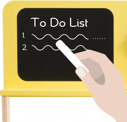Les enfants peuvent esquisser des projets, faire une liste de tâches ou décorer l’atelier avec des dessins – le tableau s’écrit et s’efface facilement.