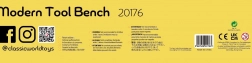 - Établi avec trous pour vis, marteau, clé plate, tournevis, scie, pince, 2 jauges (dont une coulissante), 5 vis, 5 chevilles, 5 engrenages, 3 écrous, étau