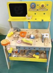 L’établi de travail en bois est un jouet idéal pour les petits bricoleurs. Les enfants peuvent visser, marteler, mesurer et assembler des engrenages tout en développant leurs compétences manuelles et leur pensée logique. Le tableau à craie intégré est parfait pour les croquis et idées de futurs projets.