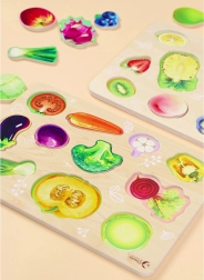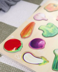 Chaque pièce représente un type de légume différent et entraîne la reconnaissance des formes, des couleurs ainsi que l’enrichissement du vocabulaire.