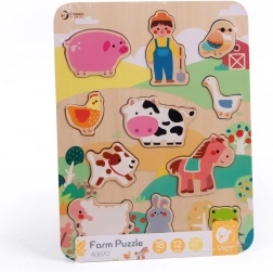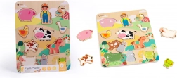 Grâce à sa construction en bois robuste et à ses bords lisses, le puzzle est sûr et agréable au toucher. 12 pièces offrent le bon niveau de défi pour les tout-petits et procurent beaucoup de plaisir renouvelé. La planche colorée au décor de ferme invite au jeu et développe l’imagination ainsi que le vocabulaire.