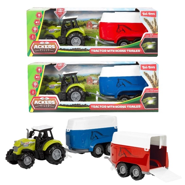 - Tracteur en plastique avec transporteur pour chevaux