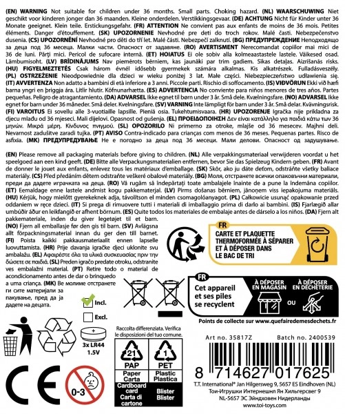 Disponible dans un assortiment de couleurs et de motifs animaliers (par ex. dinosaure, caneton, licorne, phoque, etc.). Le jeu est fabriqué en plastique résistant, dispose d’un bouton d’alimentation pratique et souvent d’une dragonne ou d’un clip pour le transport. Cadeau parfait pour les enfants dès 3 ans.