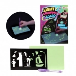 Ce set comprend une ardoise et un stylo à encre invisible, idéal pour écrire des lettres secrètes. L’encre est invisible dans des conditions de lumière normales, mais dans l’obscurité elle commence à briller, offrant des expériences uniques et surprenantes pour les enfants. Le coffret inclut également des modèles pour encore plus de plaisir et d’inspiration.