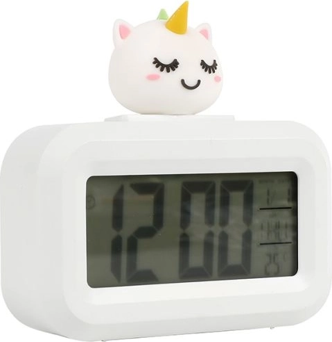 Ce mignon réveil blanc au motif de licorne ravira les enfants comme les amateurs d’accessoires féeriques. Grâce à ses dimensions compactes, il convient à une table de nuit ou un bureau. Il fonctionne avec 2 piles AAA (non incluses). Commande facile, structure légère et design sécurisé idéals pour les enfants dès 3 ans.