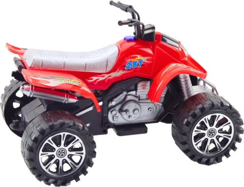 Découvrez un plaisir sans limites avec le quad tout-terrain rouge pour enfants. Grâce au mécanisme à inertie, il suffit de tirer le véhicule vers l’arrière et de le lâcher – le quad part aussitôt vers l’avant. Son design sportif aux détails soignés et sa conception robuste en font le jouet idéal pour le jardin, l’aire de jeux ou la chambre d’enfant.