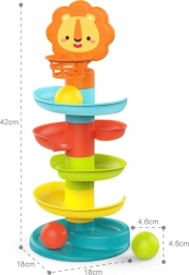 Cette tour en spirale colorée aide à développer les compétences motrices, la coordination et la précision de vos enfants. Les cinq niveaux garantissent un divertissement durable, tandis que le lion attrayant en haut peut inspirer les enfants à atteindre des objectifs et améliorer leurs compétences. Les balles contiennent de petits éléments sonores qui offrent des stimuli sensoriels supplémentaires. Le jouet est fabriqué à partir de plastique sûr et testé pour assurer la sécurité maximale des petits joueurs.
