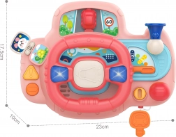 Le volant électronique WOOPIE est rempli d'activités et de divertissements. Il est équipé de boutons, lumières et sons pour simuler une expérience de conduite réaliste, engageant et soutenant l'imagination des enfants. En tournant le volant, la petite voiture se déplace, procurant un plaisir supplémentaire à votre enfant. Le volant avec panneau offre 11 fonctionnalités assurant des heures de divertissement. De plus, le produit peut être installé à l'aide des sangles au lit d'enfant, au siège-auto et à bien d'autres endroits.