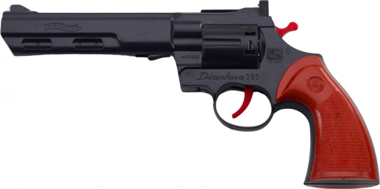 Ce revolver populaire, inspiré des classiques du western, apporte un effet saisissant et des détails fidèles. Grâce à son barillet rotatif et à la possibilité d’utiliser des amorces, il crée une impression de tir authentique, tout en restant adapté au jeu sans artifices pyrotechniques. La finition noire avec des accents rouges souligne son style.