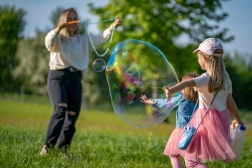 L’embout String et la solution de qualité permettent de former de très grandes bulles stables avec un fort effet arc-en-ciel – idéal pour un show au jardin.