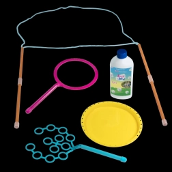 Hoop, Tree et String couvrent toutes les tailles de bulles. Avec le bol pour la solution et la recharge de 400 ml, vous pouvez commencer dès le déballage.