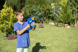 L’emballage comprend une recharge de 0,4 l, vous pouvez donc commencer immédiatement. Les effets lumineux intégrés ajoutent une touche de magie à chaque jeu, surtout à la tombée du jour. Pour fonctionner, 3× piles AA sont nécessaires (non incluses).