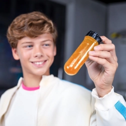 Remplissez le tube d’eau, fermez-le et secouez jusqu’à ce qu’il commence à pétiller, puis révélez votre prise mystérieuse.
