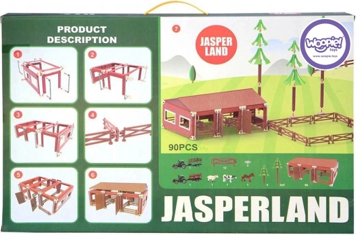 Découvrez le jeu de construction Woopie qui transforme la chambre en ferme de campagne. Le set de 102 pièces comprend une écurie, des enclos, des arbres, des animaux et 2 tracteurs verts avec remorques. L’assemblage simple des 4 plaques de base et l’emboîtage facile des accessoires assurent un jeu stable sans basculement. Idéal pour développer la motricité fine, la coordination œil–main et l’imagination créative des enfants à partir de 3 ans.