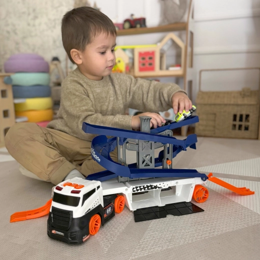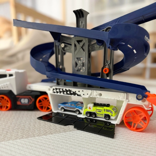 - 3-en-1 : transporteur, circuit, apprentissage – jouer, faire la course et apprendre en un seul jouet.