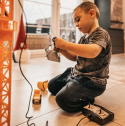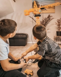 La grande grue WOOPIE apporte un chantier réaliste dans la chambre des enfants. Grâce à la télécommande, la manipulation est simple et ludique : la grue tourne, élève, abaisse et déplace les charges le long de la flèche. La hauteur réglable 103 ou 64 cm permet d’adapter le jeu à l’espace et à l’âge de l’enfant.